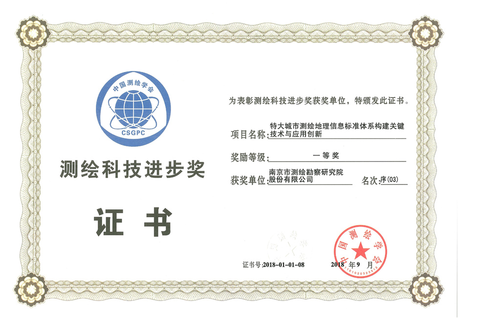 全國測繪科技進步一等獎——特大城市測繪地理信息標準體系構(gòu)建關(guān)鍵技術(shù)與應(yīng)用創(chuàng)新