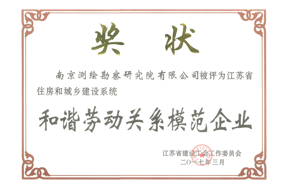 江蘇省住房和城鄉(xiāng)建設系統和諧勞動關系模范企業(yè)